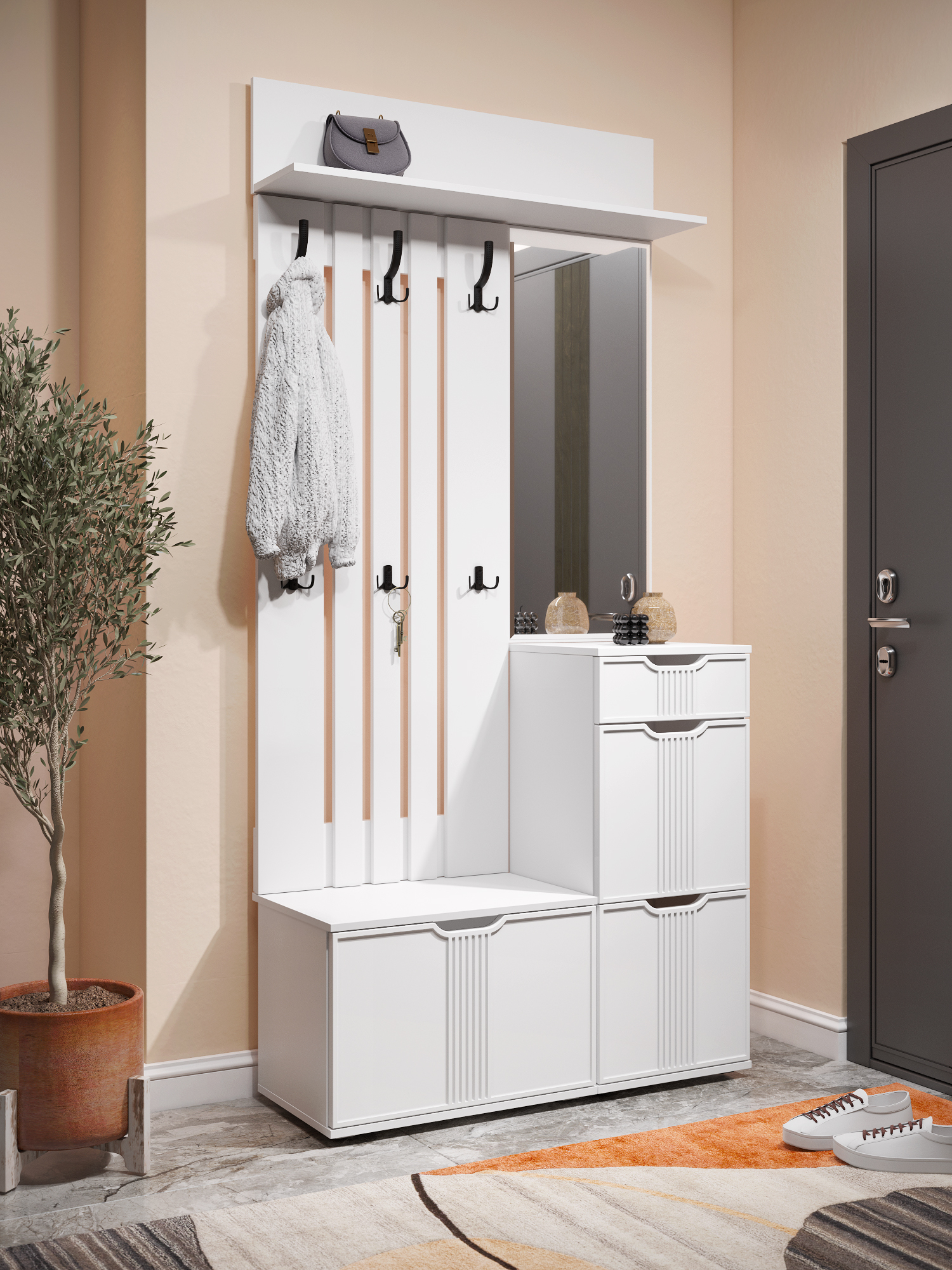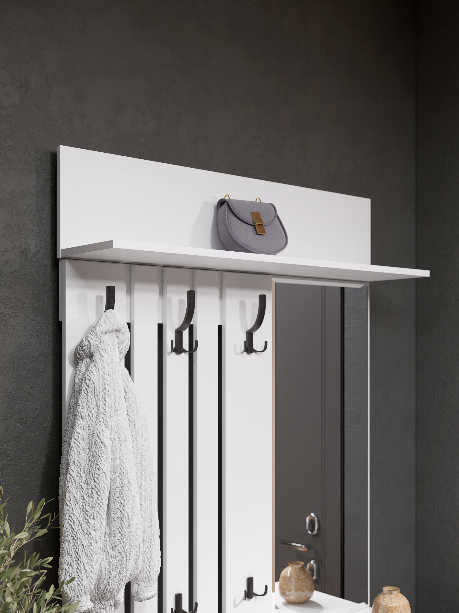 Вешалка Эмилия ЭЛ-7 компактна и функциональна, поэтому органично дополнит любой интерьер вашей прихожей. Вешалка состоит из нескольких объединенных панелей лдсп, благодаря чему на ней можно с легкостью разместить верхнюю одежду нескольких человек. Крючки металлические, максимальная допустимая нагрузка до 15 кг на один крючок. Сочетая вешалку с другими модулями из коллекции Эмилия, Вы можете создать стильную и лаконичную прихожую у себя дома.