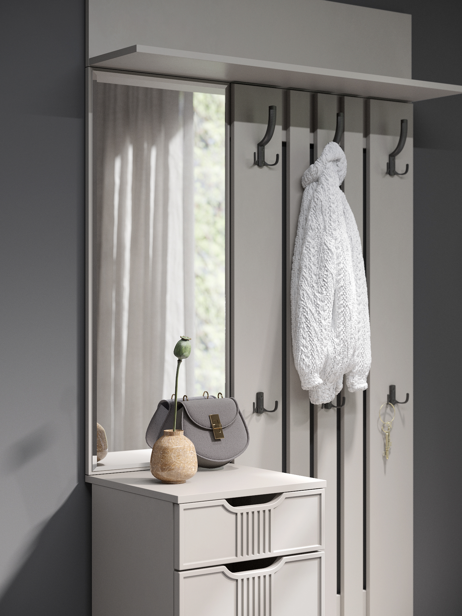 Зеркало Эмилия ЭЛ-5 можно установить как вертикально, так и горизонтально. Для крепления зеркала к стене в комплекте фурнитуры идут удобные регулируемые подвески. Фацет по краю придает изделию законченный вид, выразительность и дополнительный блеск. Зеркальное полотно установлено на панель из лдсп. Размер зеркального полотна с фацетом: 910х380 мм. Размер зеркала полностью с учетом рамки: 930х400 мм. Сочетая зеркало с другими модулями из коллекции Эмилия, Вы можете создать стильную и лаконичную прихожую у себя дома.